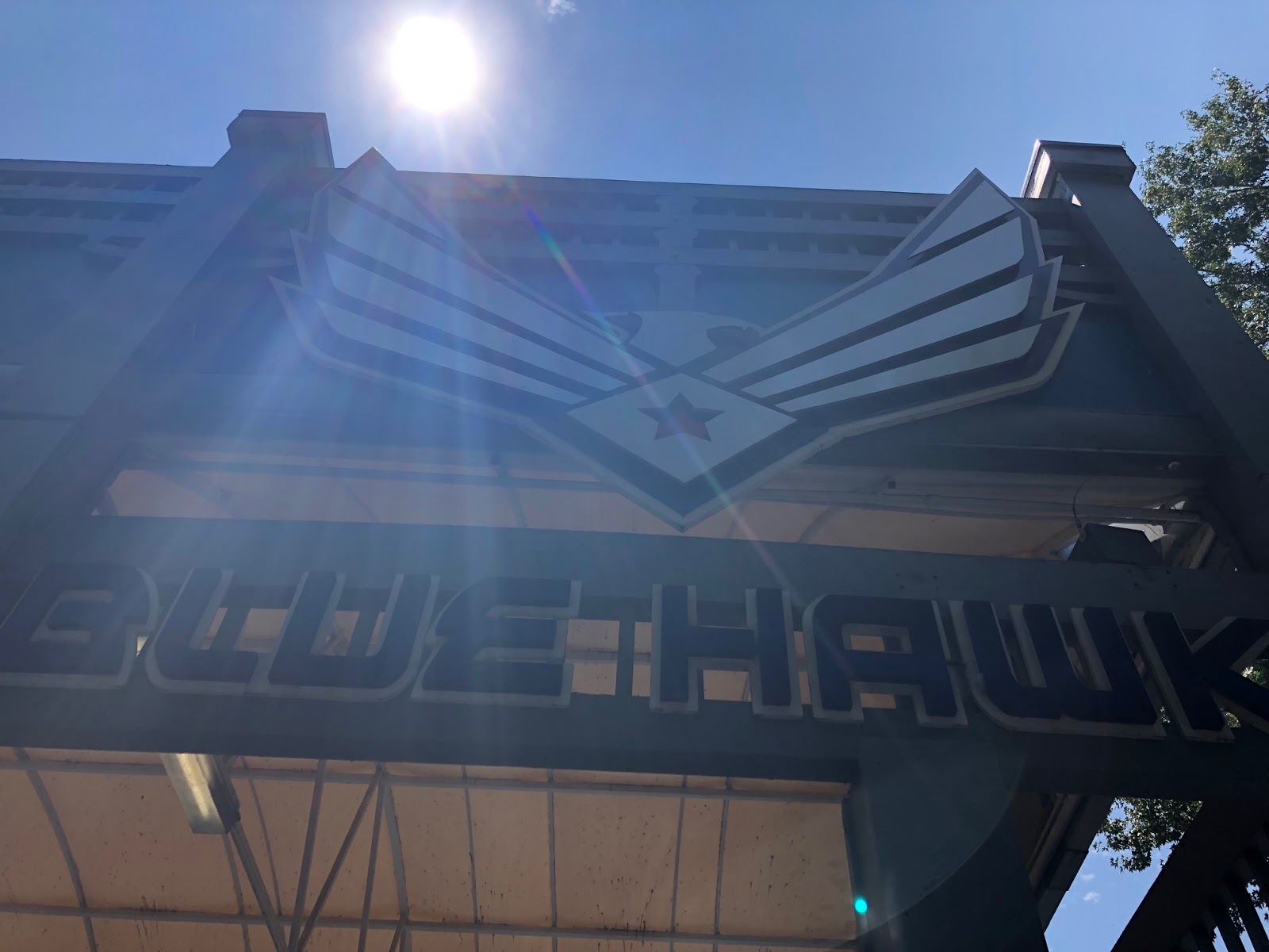 Blue Hawk is the parks Vekoma Looping Coaster. This was my second favorite ride in the park. Formerly known as Ninja, SFOG put a ton of money into it a few seasons ago and added new trains with soft vest restraints, new paint, and track work. The end result is a smooth, forceful ride, with some ridiculous elements. I absolutely loved this ride, and re-rode it multiple times!